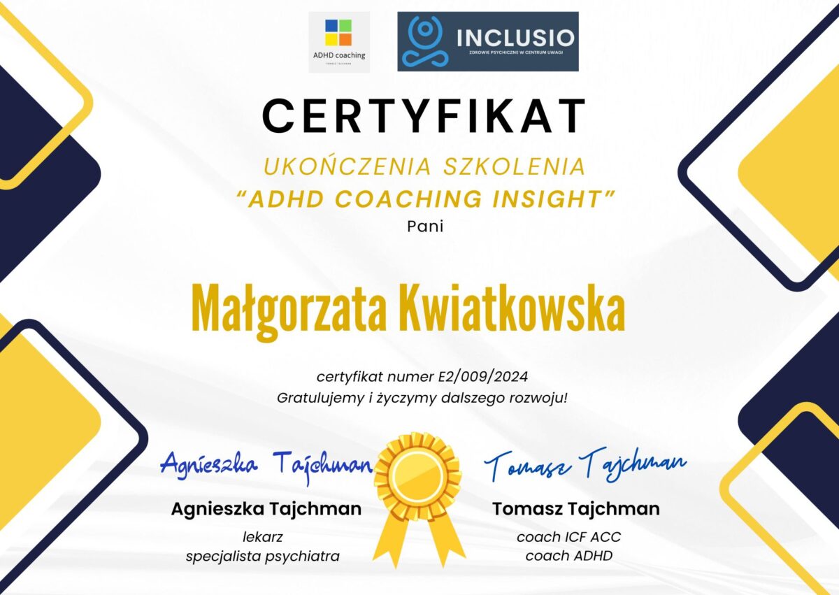 Ukończone szkolenia w kierunku ADHD: